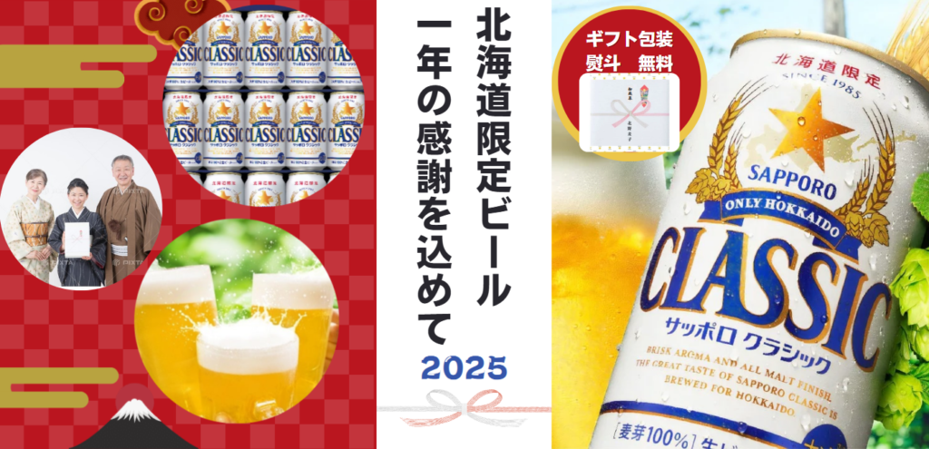 ご親戚・ご友人・会社の上司や同僚お取引先様など、北海道限定【サッポロクラシック】をどうぞ。